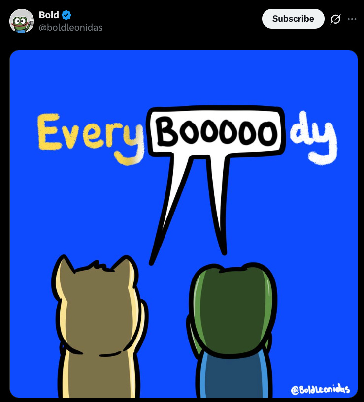 This whole exercise displayed how much of a bubble the industry is in. It feels like the dying embers of an empire holding lavish banquets to keep up appearances while the public goes hungry. Crypto Twitter, more than ever, feels like a few big accounts boosted by bots. Honestly, the disconnect I feel from the wider space has never felt so pronounced.